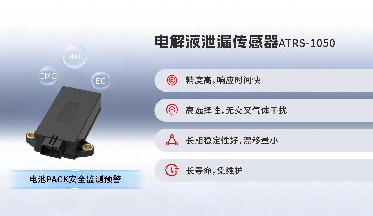 • 早期探测:电解液泄漏传感器ATRS-1050可精准捕捉锂电池电解液微量蒸汽泄漏,助力热失控极早期预警。采用NDIR红外检测技术,抗干扰能力强,可实时准确监测DMC、EMC等特征气体浓度,是电化学储能及动力电池极早期安全监测的优选方案。展会期间,产品凭借硬核实力脱颖而出,获得多家头部企业高度认可与深度对接意向。